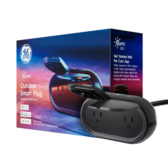GE CYNC Outdoor Smart Plug, Works with Alexa and Google Assistant, Bluetooth and Wi-Fi Enabled